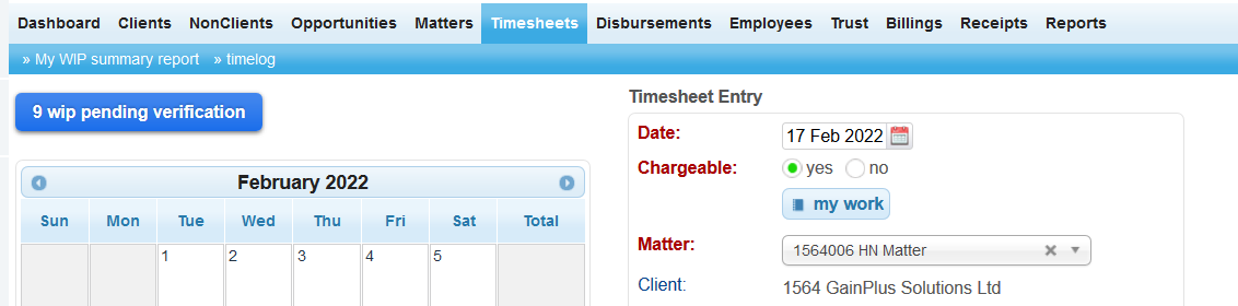 In case you want to focus on timesheet details and perhaps adjust timesheet in that process, click on the [wip pernding verification] button on the top of the screen.