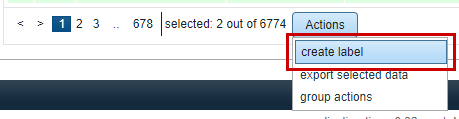 To create a label, select from the matter list the matters you would like to create a label for by ticking the box that corresponds with the matter entry. Once you have selected your choices, click actions and then select create label from the drop-down menu.