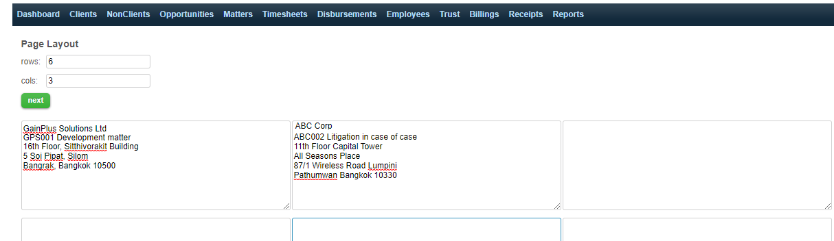 On the next screen titled page layout, select the number of rows and columns to create.