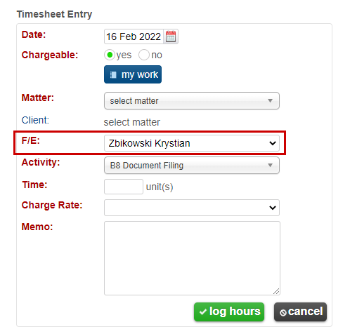 If you would like to record time for someone other than yourself, this can be done by accessing your User profile in the system settings.